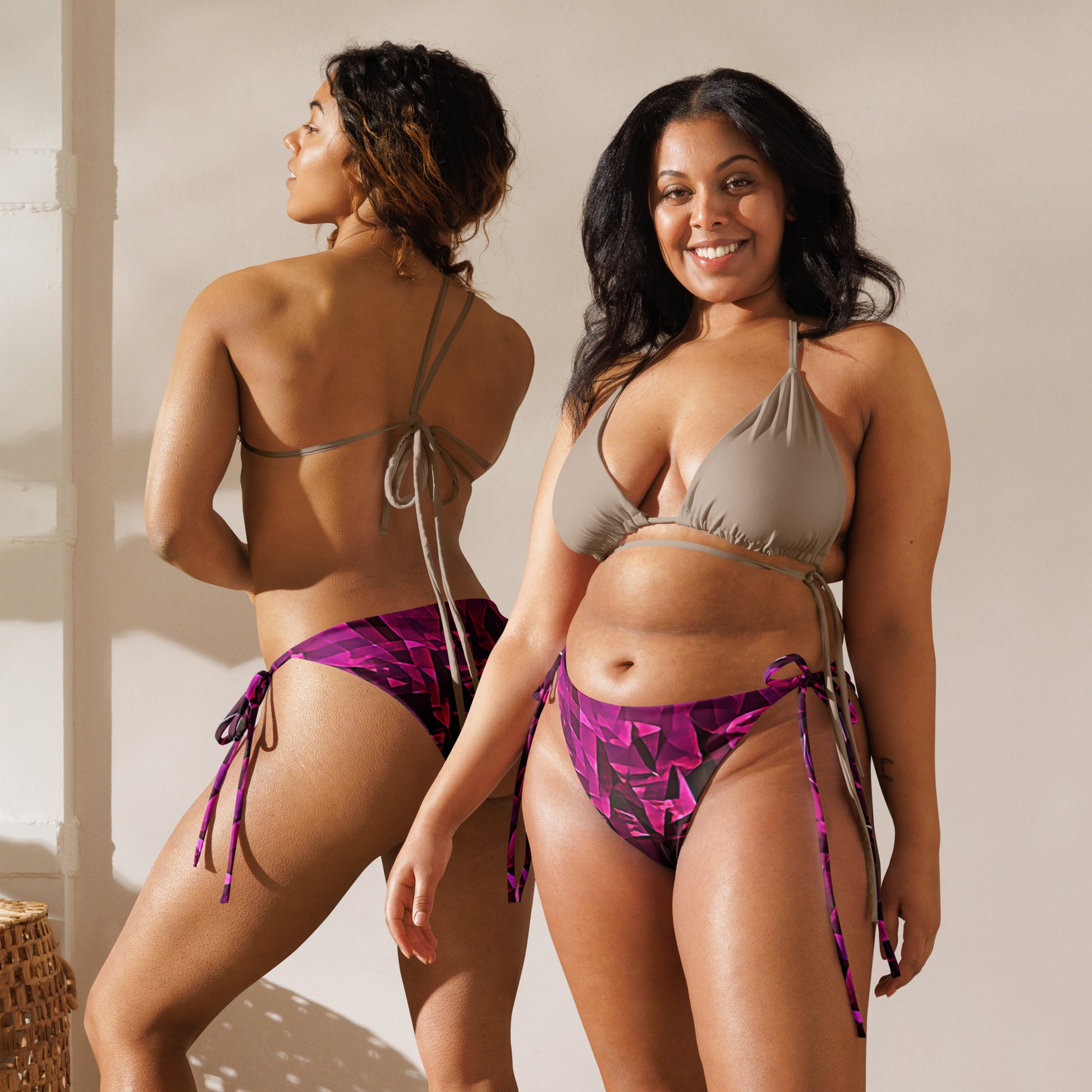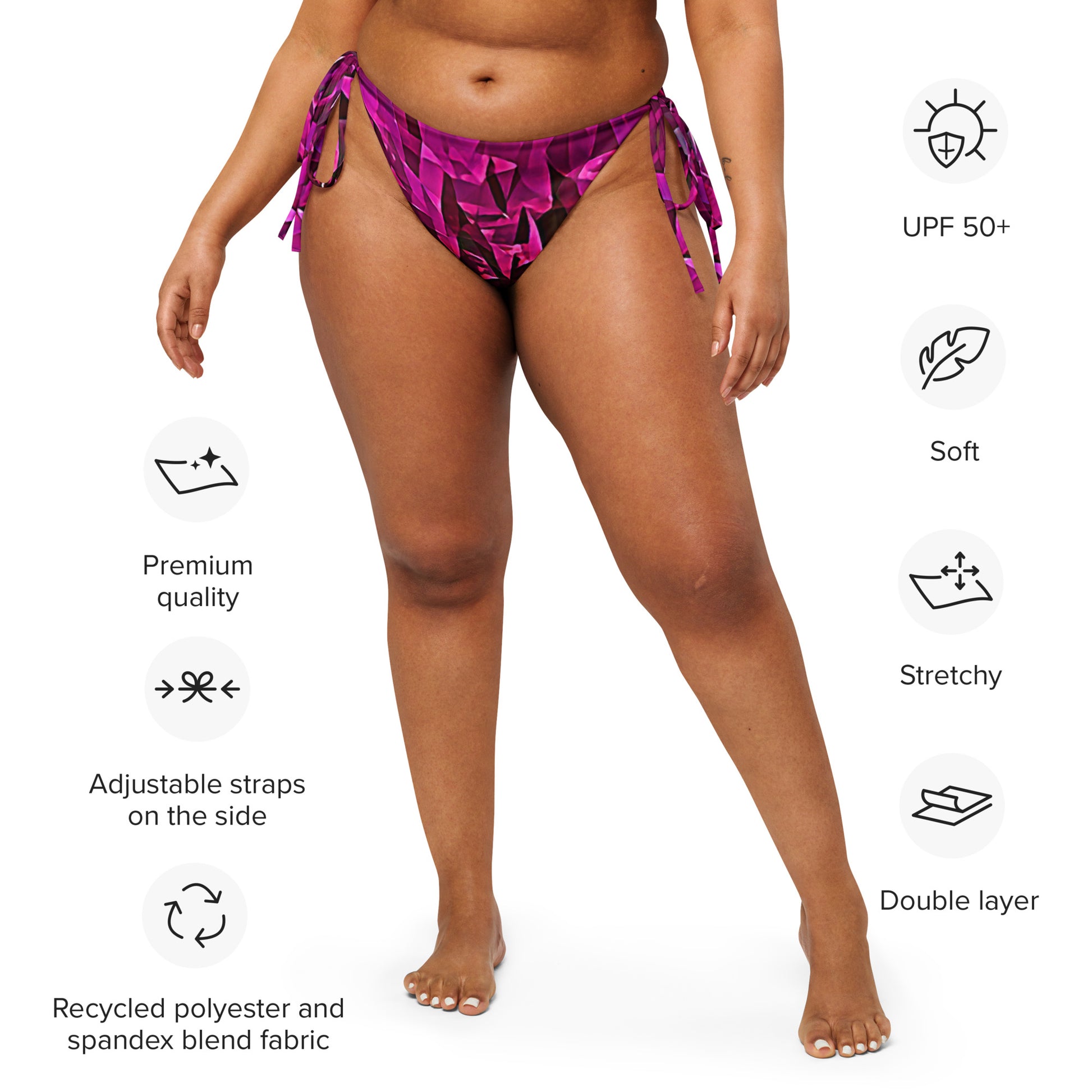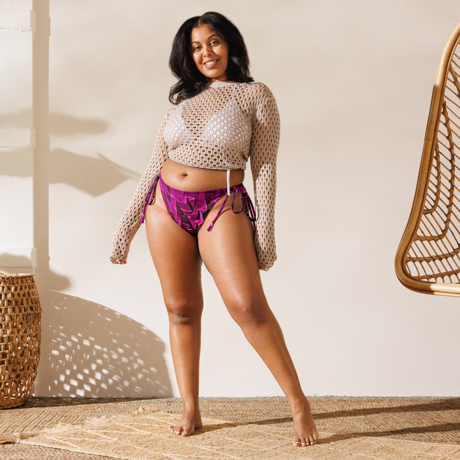 Get ready for some serious sunbathing with aisoi's String Bikini Bottom. This summer essential is crafted from soft, stretchy recycled polyester, complete with UPF 50+ sun protection and adjustable straps for a customized fit. With over 100 unique designs to choose from, you can mix and match styles and sizes to create the perfect beach look. Relax and soak up the sun by the pool in style!